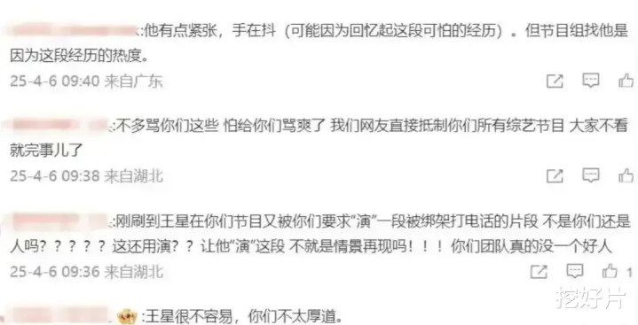 很显然,节目方就是想要利用王星的热度,让他再度回忆往事,来增加节目的关注度,相信这一段经历应该是王星最恐惧,不想回忆的几天了,无异于揭人伤疤。